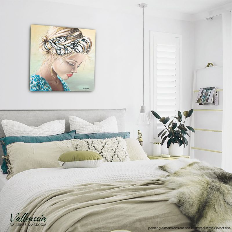 Tranquillity is the new member in Metallic Collection. It’s always interesting to me to try to interpret the opposites, light vs dark, gentle vs drama, warm vs cold, Renaissance vs modern and put all those things in one painting.