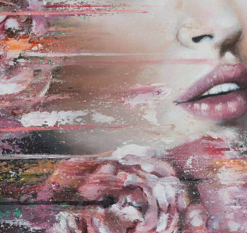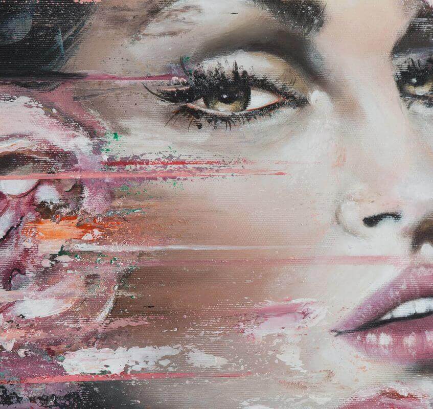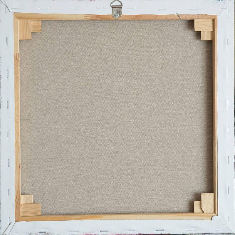 The artist works with professional-grade acrylics on gallery-wrapped, professional-grade canvases.