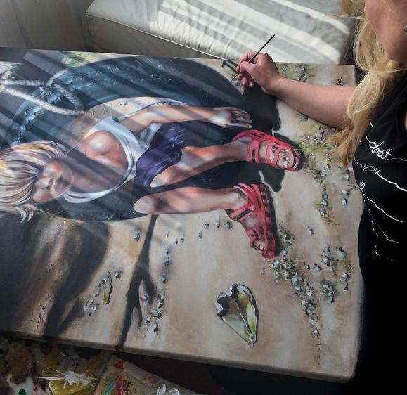 Mario is an adorable, warm child, with a vibrant sun-kissed haircut and lovely sparkly eyes. Vallenssia wanted to do her best to bring all of that to the canvas and anyone who knows him said – yes, that’s Mario!