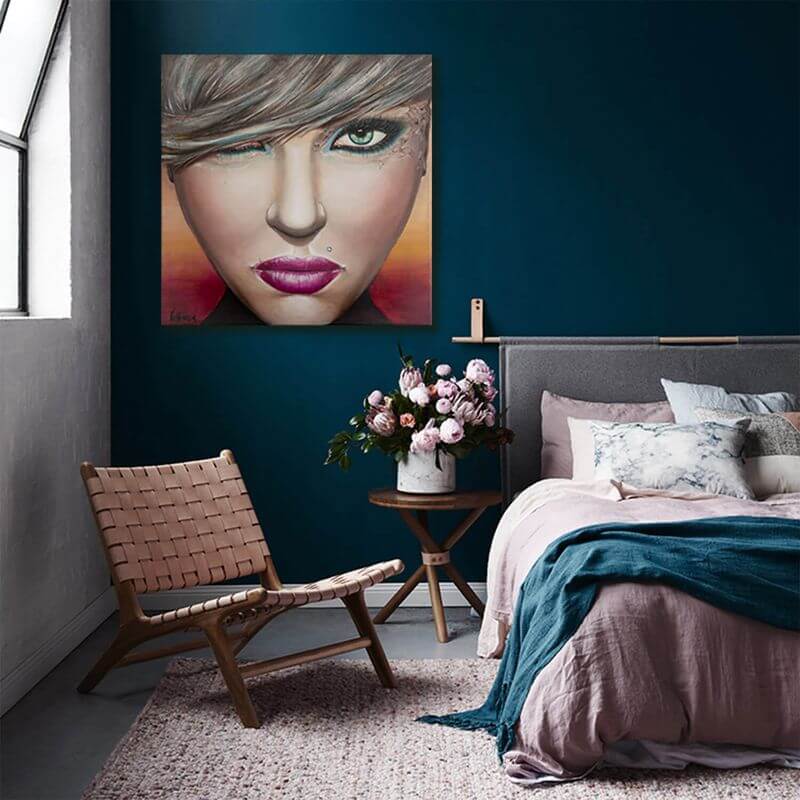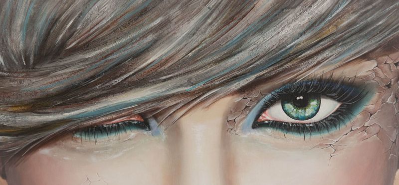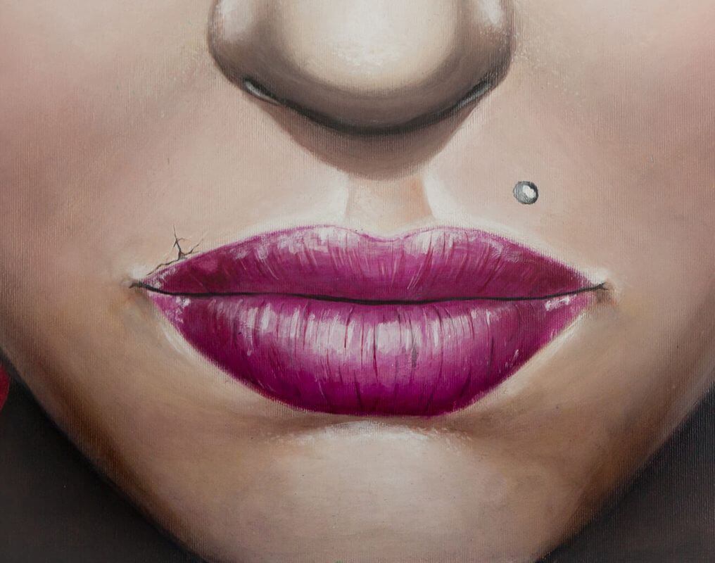 The Silent is an acrylic painting with heavy layers of paint, especially the hair which is partially done with silver spray paint. The following paintings, all of them will explore the liquid or solid metal on different parts of the body or face.